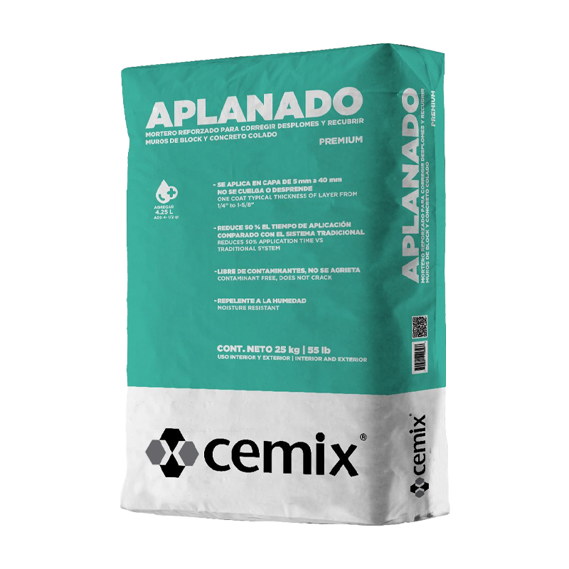 El Aplanado de CEMIX de 25 kg es un recubrimiento diseñado para la nivelación y acabado de muros, ofreciendo una superficie uniforme y lista para recibir pintura u otros recubrimientos.