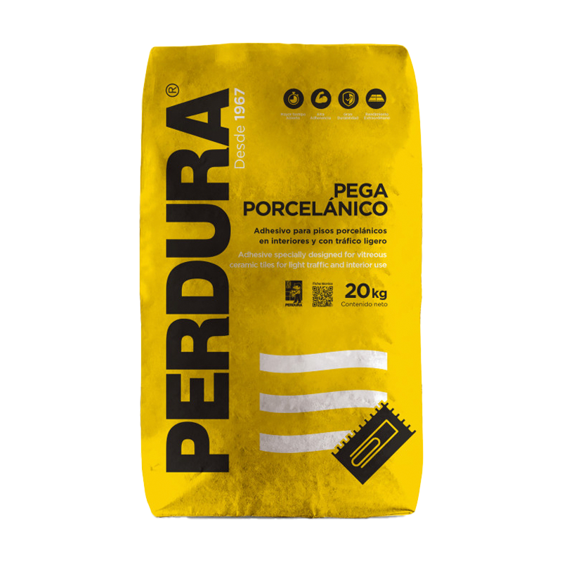 Perdura Porcelanato 20kg recomendado para trabajos de construcción y remodelación.